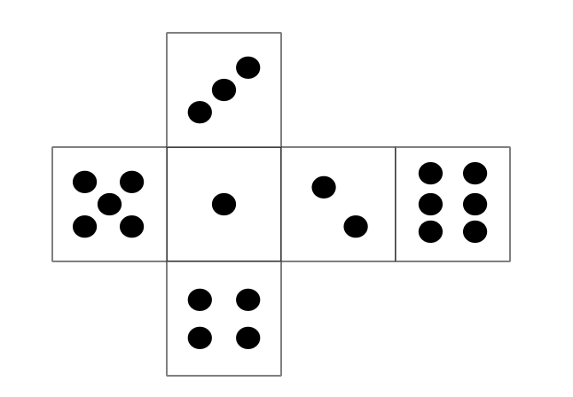 給定 $n$ 個骰子排成一列,一開始都是點數 $1$ 朝上,點數 $4$ 朝前,點數 $2$ 朝右 (如下左圖所示),另外骰子的展開圖如下右圖所示。