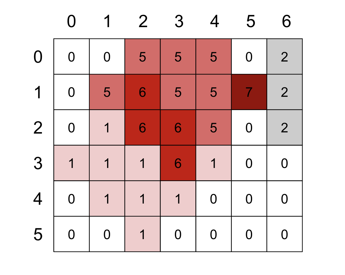 每次畫筆操作為選一個座標 $(r, c)$ 停留 $t$ 秒,他會將曼哈頓距離 $\le t$ 的區塊染上顏色 $x$。若有多個顏色重複填到相同區塊,顏色的數值會累加起來。