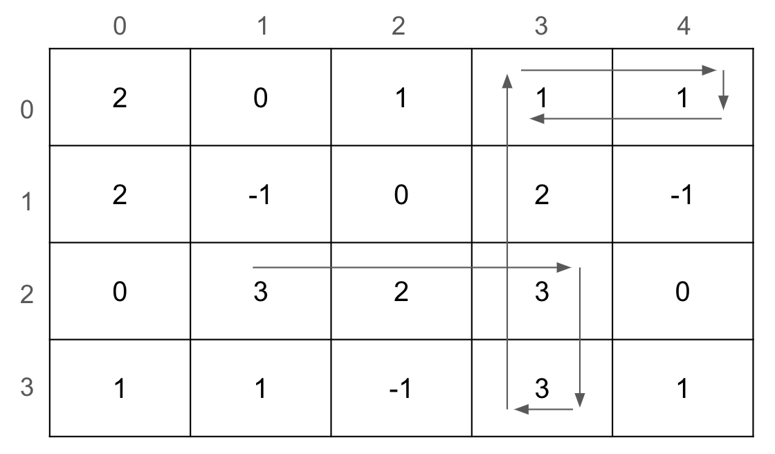 有一個 $M \times N$ 的地圖,每一格的數字紀錄著寶石的數量,如果數字是 -1 代表牆壁。